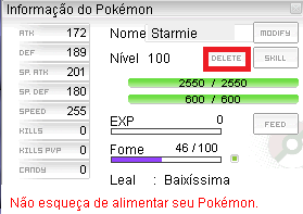 Caso queira excluir um pokemon, bastar abrir o Alt + R do mesmo, e realizar o 'delete' em seu botão, vale lembrar que após executado não há como voltar atrás do procedimento