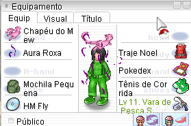 • Abre a janela de equipamentos, onde você pode ver e gerenciar os equipamentos que o personagem está usando, como pokemons, trajes, acessórios.